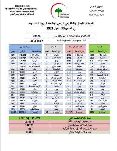 الصحة تسجل12597 إصابة جديدة بكورونا