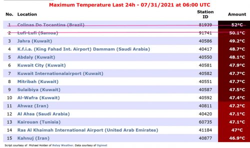 ونشرت محطة “بلاسيرفيلي” في كاليفورنيا الأمريكية، جدولا لـ15 دولة سجلت أعلى معدل بدرجات الحرارة لم يكن العراق من ضمنها. انتهى