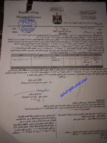 بالوثيقة : نائب يزف البشرى لمحاضري محافظة المثنى