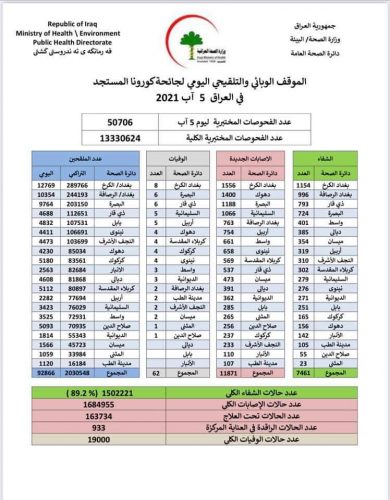 الصحة تسجل 11900 اصابة جديدة بكورونا