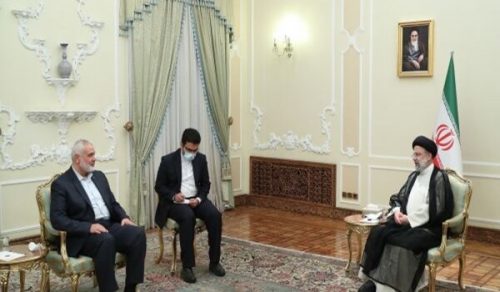بدوره قال “اسماعيل هنية” رئيس المكتب السياسي لحركة حماس في اللقاء انه يحمل رسالة تهنئة وتحيات الشعب الفلسطيني المقاوم والمظلوم في كافة انحاء فلسطين والعالم لآية الله رئيسي وقال ان الجمهورية الاسلامية في ايران والامام الخميني قدس سره اولوا اهتمامهم الجاد بقضية فلسطين منذ بداية انتصار الثورة الإسلامية .