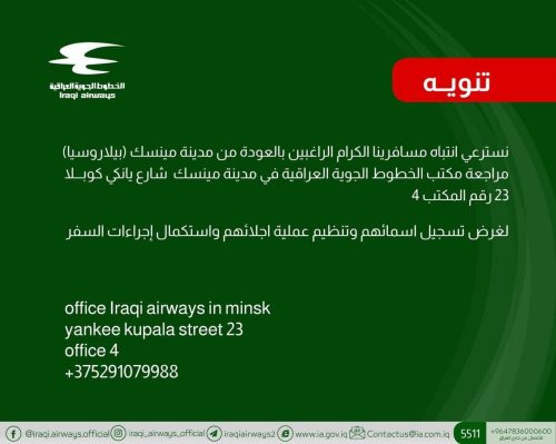 الخطوط الجوية تتحرك لإجلاء العراقيين الراغبين بالعودة من بيلاروسيا