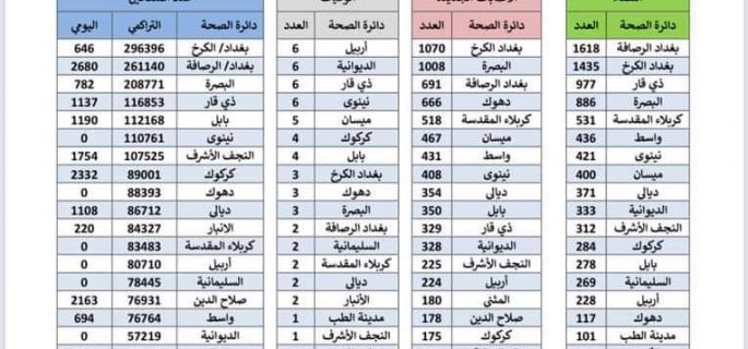 الصحة تسجل 7973 اصابة جديدة بكورونا
