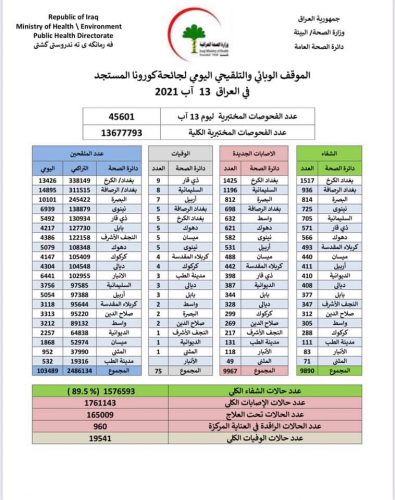 الصحة تسجل 9967 إصابة جديدة بكورونا