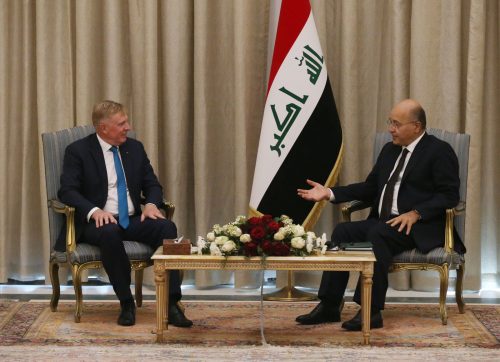 وذكر بيان رئاسي، تلقت*الرأي* الدولية نسخة منه، أن “رئيس الجمهورية، برهم صالح، استقبل في قصر السلام ببغداد، وزير الدفاع الأستوني كالي لانيت”.