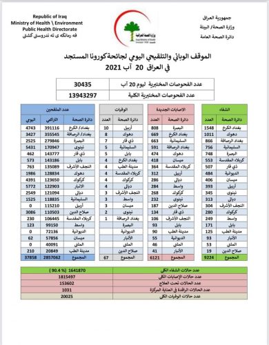 الصحة تسجل 6121 اصابة جديدة بكورونا