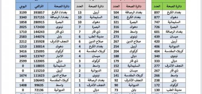 الصحة تسجل 3958 اصابة جديدة بكورونا