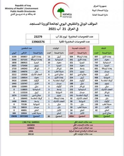 الصحة تسجل 3958 اصابة جديدة بكورونا
