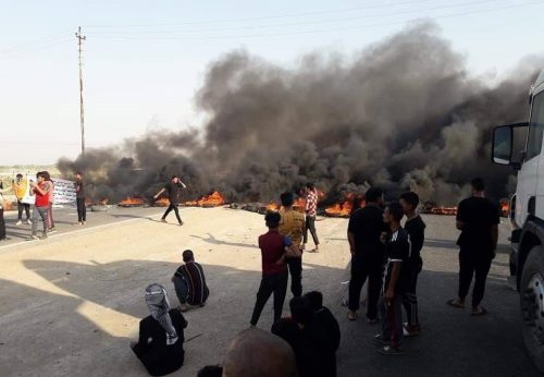 متظاهرون يقطعون احد الطرق الرئيسة في ذي قار