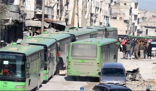 وبيّنت الوكالة أنّ “عدداً من الباصات دخلت إلى منطقة درعا البلد لنقل الإرهابيين الرافضين للتسوية إلى الشمال السوري حيث احتشد آلاف المواطنين المهجرين من تلك المناطق عند حاجز السرايا بانتظار خروج الإرهابيين ليعودوا إلى منازلهم التي غادروها مكرهين قبل نحو شهر لكن المجموعات الإرهابية المتحصنة في درعا البلد أطلقت عدّة قذائف هاون على الأحياء الآمنة في المدينة في محاولة جديدة لترهيب الأهالي وتعطيل عملية الخروج”.