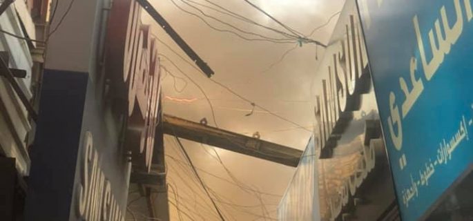 15 فرقة إطفاء للسيطرة على حريق في سوق بالشعلة