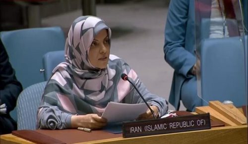 اكدت سفيرة ومساعدة البعثة الدبلوماسية الدائمة للجمهورية الاسلامية الايرانية في نيويورك ارادة ايران الحازمة باستيفاء حقوقها المشروعة في الاستخدام السلمي للطاقة النووية، محذرة الكيان الصهيوني من مغبة اي خطأ في الحسابات او خطوة مغامرة.