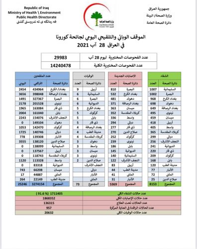 الصحة تسجل 5369 اصابة جديدة بفيروس كورونا