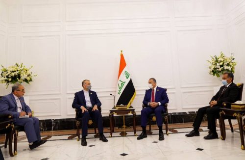 التقى رئيس مجلس الوزراء مصطفى الكاظمي، السبت، وزير خارجية إيران، حسين أمير عبد اللهيان، رئيس الوفد الإيراني إلى مؤتمر بغداد للتعاون والشراكة، الذي اختتمت أعماله اليوم.