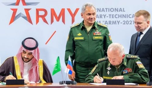 والثلاثاء، قال نائب وزير الدفاع السعودي الأمير خالد بن سلمان إن المملكة وروسيا وقعتا اتفاقية “تهدف إلى تطوير مجالات التعاون العسكري المشترك بين البلدين”.