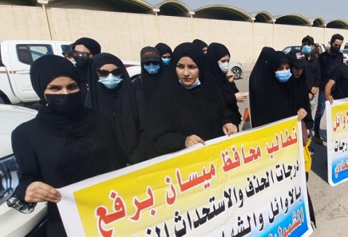 وأفاد مصدر في ميسان، أن “العشرات من الخريجين الاوائل نظموا وقفة احتجاجية أمام دار ضيافة المحافظة للمطالبة بتطبيق قرار 67 القاضي بتفضيلهم وشمولهم بالتعيين ضمن درجات الحذف والاستحداث في دوائر الدولة”.