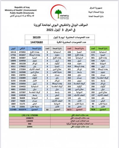 الصحة تسجل 5672 اصابة جديدة بكورونا