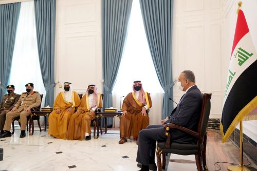بحث رئيس مجلس الوزراء مصطفى الكاظمي، مع وزير الداخلية السعودي عبد العزيز بن سعود بن نايف آل سعود التعاون الامني بين بغداد والرياض.