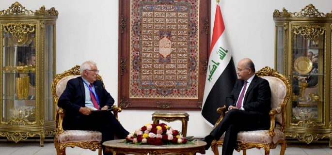 اكد رئيس الجمهورية برهم صالح، الإثنين، خلال استقباله الممثل الأعلى لسياسة الأمن والشؤون الخارجية في الاتحاد الأوروبي جوزيب بوريل، حرص العراق على توطيد علاقاته مع الاتحاد الأوروبي.