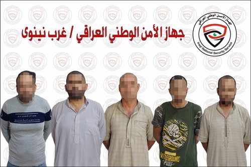 وقالت الخلية في بيان تلقت *الرأي* الدولية نسخة منه، ان “مفارز جهاز الأمن الوطني في نينوى وبناءً على مذكرات قضائية، تمكنت من إلقاء القبض على (5) عناصر إرهابية ينتمون لعصابات داعش الاجرامية، احدهم مسؤول وكر لإيواء الإرهابيين فيما يعرف بولاية الجزيرة، والاخر مسؤول عن واردات النفط، ويعمل الثالث بصناعة العبوات الناسفة وتفخيخ العجلات، وما تبقى منهم يعملان كمقاتلين فيما يسمى ديوان الجند ضمن الولاية ذاتها”.
