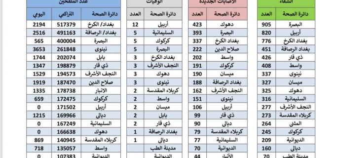الصحة تسجل 3086 اصابة جديدة بكورونا
