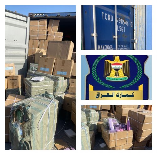 واضافت، انها”ضبط حاوية اخرى حجم (٤٠) قدما في كمرك بوابة البصرة تحتوي على مواد تجميل مخالفة لضوابط الاستيراد كانت مخفية خلف ادوات احتياطية للسيارات وقد تمت عملية الضبط استنادا على معلومات من هيئة المنافذ الحدودية وبالتعاون مع الجهات الساندة”.انتهى