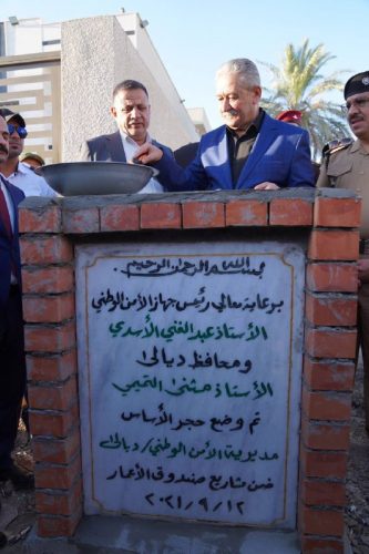 وضع رئيس جهاز الأمن الوطني عبد الغني الأسدي، الاحد، حجر الاساس لمشروع بناية مديرية الأمن الوطني في محافظة ديالى.