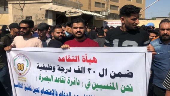 وقال مصدر في المحافظة، أن “العشرات من الأجراء اليوميين ضمن الـ 30 ألف درجة وظيفية اغلقوا فرع هيئة التقاعد الوطنية وسط البصرة، للمطالبة بتحويلهم إلى عقود وزارية وصرف مستحقاتهم المالية المتأخرة”.