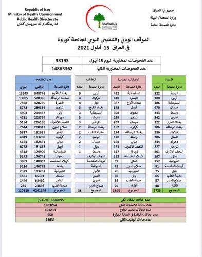 الصحة تسجل 3895 إصابة جديدة بكورونا