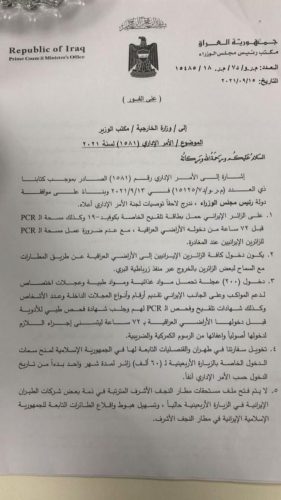 بالوثيقة.. توصيات الكاظمي المتعلقة بدخول زائري الأربعينية الإيرانيين