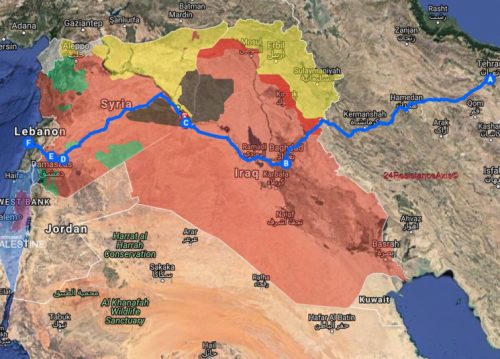 ولعل أكبر خطأ يرتكبه الأمريكيون(إلی جانب غزو أفغانستان) هو زعزعة استقرار العراق وسوريا؛ خطأ أدى إلى فتح طريق بري من طهران إلى بيروت. وقد اعترف العديد من الخبراء بوجود هذا المسار وأطلقوا عليه تسميات مختلفة؛ مثل “الممر البري بين طهران والبحر الأبيض المتوسط”.