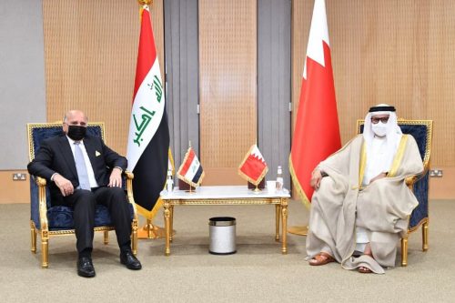 ونوه: يهمُّنا أن نرى عراقاً مُبادِراً ومُزدهِراً، ويهمُّنا مدُّ جُسُور التعاون بمُختلِف المجالات، مُضيفاً أنَّ البحرين تدعم العراق في كافة المحافل الدوليّة لعودته لمكانته في المنطقة، ونحن سعداء بنتائج مُؤتمر بغداد للتعاون والشراكة ونهنئكم بنجاحه. انتهى