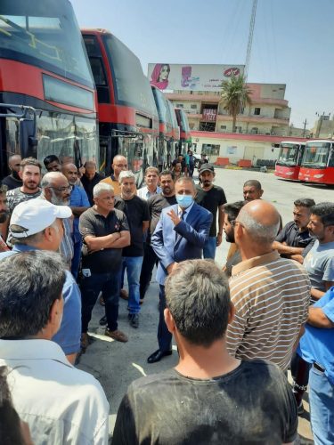 وأشار المدير العام بحسب البيان، الى توجيهات وزير النقل الكابتن ناصر حسين بندر الشبلي التي تنص على مواصلة الجهود والاستعداد المبكر لملف نقل زوار الاربعين في كربلاء المقدسة، مؤكداً خلال لقائه عدد من موظفي الشركة العاملين في القطاع انه على الجميع تحمل المسؤولية في اداء عملهم كفريق واحد لتطوير عمل الشركة، فيما اشاد بجهودهم في اعمال التهيأة والتحضير لباصات قسم النقل الداخلي. انتهى