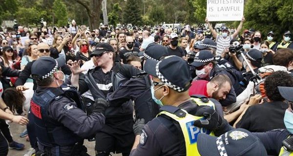 أوقف مئات المتظاهرين وأُصيب شرطيون بجروح السبت في ملبورن في أستراليا، أثناء مواجهات عنيفة مع محتجين مناهضين لتدابير الإغلاق.