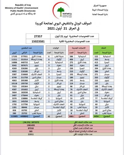 الصحة تسجل3081 إصابة جديدة بالفيروس كورونا