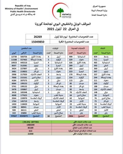 الصحة تسجل 2906 إصابات جديدة بكورونا