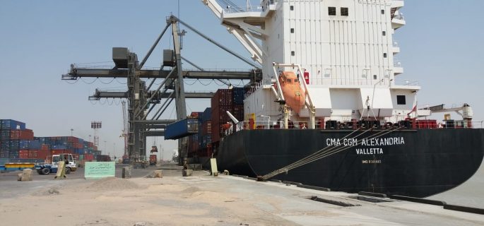 وزارة النقل تستقبل سفينة حاويات وناقلة نفط على ارصفة ميناء ام قصر