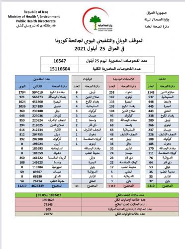 الصحة تسجل 1312 اصابة جديدة بكورونا