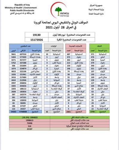 الصحة تسجل 2401 إصابة جديدة بكورونا