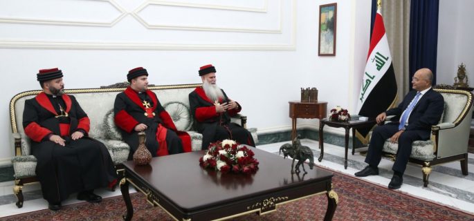 واضاف البيان، أن “في مستهل اللقاء، هنأ الرئيس برهم صالح نيافة الأسقف مار شمعون دانيال بمناسبة رسامته أسقفاً على العراق ومعاونا بطريركياً في كاتدرائية مريم العذراء في بغداد، متمنياً له التوفيق في مهامه، فيما قدّم نيافة مار شمعون دانيال شكره وتقديره لرئيس الجمهورية ومتابعته المستمرة لشؤون المسيحيين في البلد”.