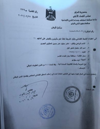 بالوثيقة : مذكرة قبض بحق لواء متقاعد شارك بمؤتمر أربيل
