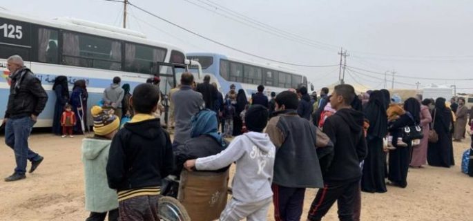 وقال المصدر إن “عدد العوائل التي تم نقلها هي 172 عائلة وتم نقلهم عبر الحدود البرية من خلال حافلات حكومية تم التهيئة لها من قبل وزارة الهجرة والمهجرين”.