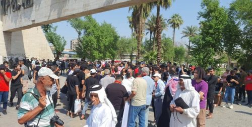 وقال مصدر ان “العشرات توافدوا الى ساحة التحرير وسط بغداد على الرغم من قطع القوات الامنية لجميع الطرق المؤدية الى الساحة”، مبينا ان “المتظاهرين رفعوا لافتات ورددوا شعارات تطالب بكشف قتلة المتظاهرين وازاحة الفاسدين عن الحكم”. انتهى