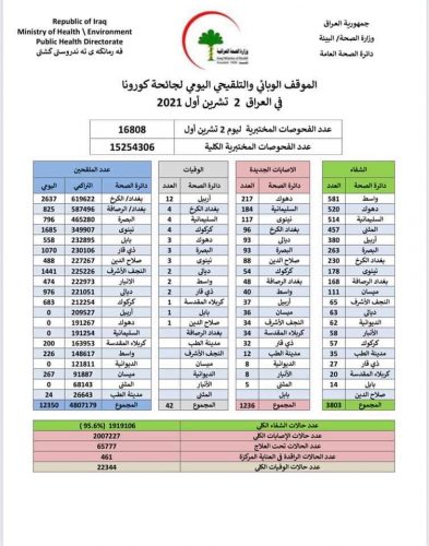 الصحة تسجل 1236 اصابة جديدة بكورونا