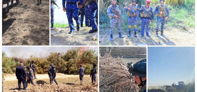 وذكر بيان للوزارة تلقت *الرأي* الدولية نسخة منه، انه تواصل قطعات الشرطة الاتحادية عملياتها الأمنية في تطهير قواطع المسؤولية من مخلفات العصابات الإرهابية المهزومة ، حيث نفذت قوة من اللواء التاسع الفرقة الثالثة شرطة اتحادية بالاشتراك مع مفارز استخبارات اللواء التابعة لوكالة الاستخبارات والتحقيقات الاتحادية، مسنودة بالجهد الهندسي ومفارز الطائرات المسيرة عملية تفتيش منطقتي (السحيل، الحوايج) بقضاء الحويجة بكركوك وتعثر خلالها على 3 صواريخ قاذفة RBG7 وعبوة ناسفة نوع بلازما حديدية، تم رفع وإتلاف جميع المواد من قبل مفارز الجهد الهندسي.