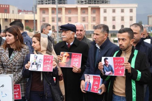 اعتصم العشرات من الناشطين بالإضافة إلى أعضاء برلمان كردستان، الاثنين، أمام محكمة أربيل، للتنديد بالتأجيل المتواصل لمحاكمة ناشطي بادينان، والمطالبة بإطلاق سراحهم.