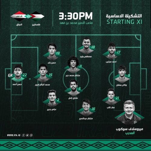 تشكيلة المنتخب الاولمبي لمباراته مع نظيره الفلسطيني بافتتاح بطولة غرب آسيا