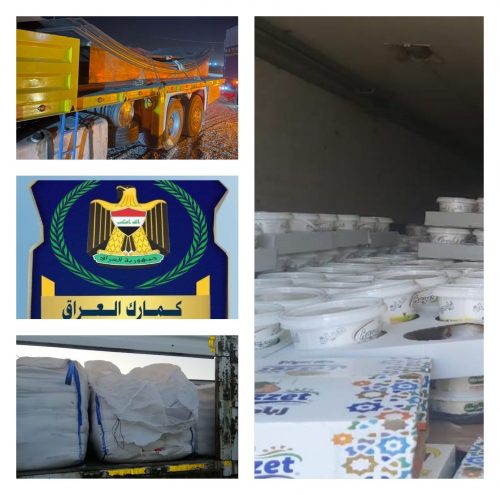 وأضافت، أن “الشاحنات محملة مواد غذائية ( ألبان و اجبان مختلفة) و مواد كيميائية ( كاربونات الكالسيوم ) و ( حديد بليت مستورد ) مخالفة للضوابط و التعليمات النافذة”.انتهى