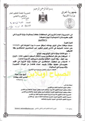 ضوابط جديدة لتنظيم أمور المحاضرين والمتعاقدين بمديريات تربية بغداد والمحافظات