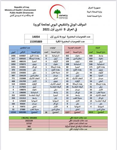 الصحة تسجل 1227 إصابة جديدة بكورونا